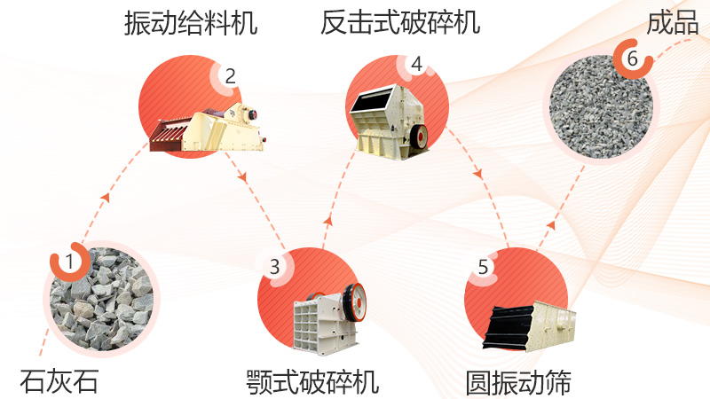 物料由GZD-1500×5600振動給料機均勻、定量、連續(xù)地輸送進PE-1200×1500鄂式破碎機,進行粗碎,粗碎后的石料由輸送機送到PF-1520反擊式破碎機進行細碎;破碎后的物料由輸送機送進振動篩進行篩分,符合粒度要求的石料由成品輸送機送往成品料堆;不符合粒度要求的物料由輸送機返料送到PF-1520反擊式破碎機再次破碎,形成閉路多次循環(huán)。生產過程中,各級設備配備合理,提高了生產效率。
