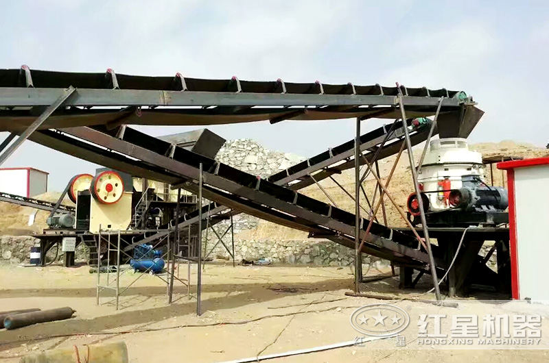 根據原料屬性以及用戶要求,紅星技術人員為山西李先生配置了這個時產200噸固定花崗巖生產線,選用的都是抗壓性能強的顎式破碎機、圓錐破碎機,破碎比大,把600多毫米的花崗巖破碎出了4種成品,這種生產線的主要特征是投資小,收益穩定。