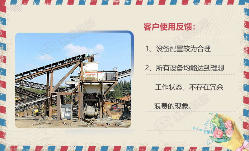 整條制沙生產線設備配置較為合理,所有設備均能達到理想工作狀態(tài),不存在冗余浪費的現(xiàn)象,且產出的沙石成品也都不錯(可以賣上好價錢),僅投產半年已處于盈利狀態(tài),客戶表示很滿意!