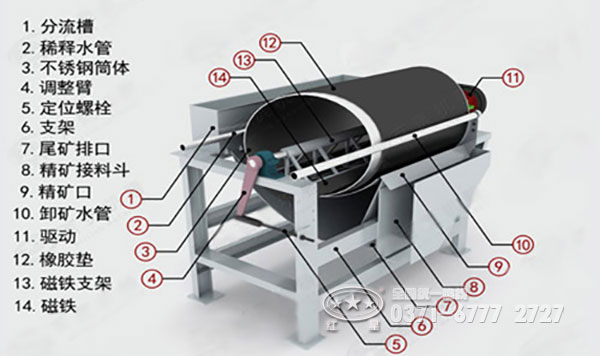 鉀長(zhǎng)石除鐵磁選機(jī)通過(guò)將原礦中的鐵、云母等物質(zhì)選出,得到純度更加高的鉀長(zhǎng)石,使其經(jīng)濟(jì)應(yīng)用領(lǐng)域和經(jīng)濟(jì)價(jià)值都得到了提升。該設(shè)備工作效率高、處理能力強(qiáng)、磁選效果好,以下詳細(xì)介紹鉀長(zhǎng)石除鐵磁選機(jī)工作原理。